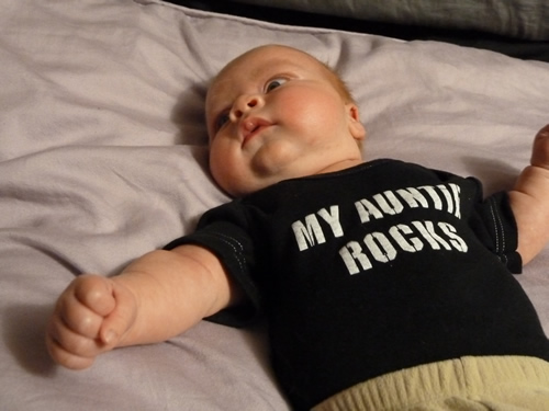 We went out for lunch on Thursday. Not that I remember it. Mommy bought an app for her iPod that has this running water noise that puts me right to sleep. Daddy stuck the iPod in my car seat when we left the house and I slept through the whole lunch. When Daddy dropped Mommy off at work, we went in to see Mommy's co-workers. Then I started crying. I screamed all the way home and until Daddy stuck a bottle in my mouth.