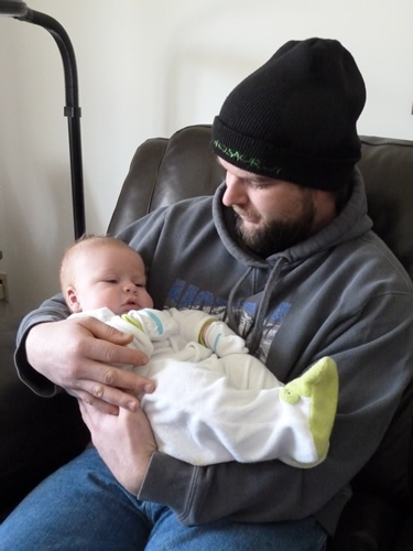 Uncle Neil is holding me! See, I don't bite - I don't have any teeth! Yet.