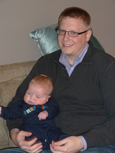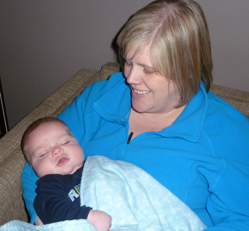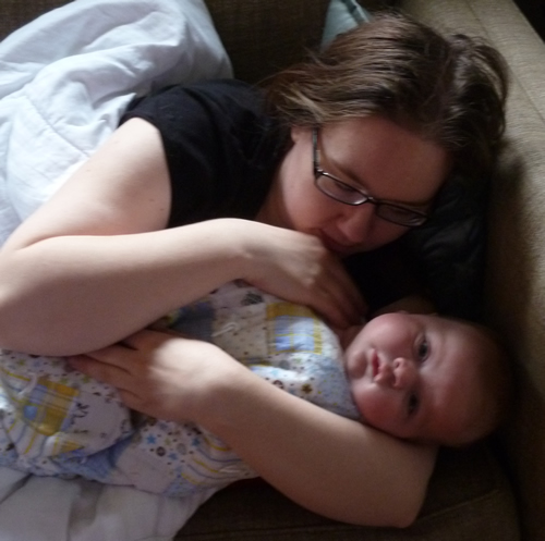 Snuggling with Mommy at Auntie Kara and Uncle Josh's house.