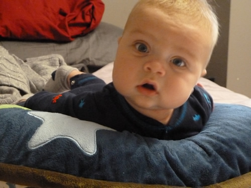 On Saturday night Mommy and Daddy played games with Kathy and Ben from down the street. I was naughty and fussed and cried and refused to go to sleep until way past my bedtime. I wanted to visit too!