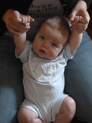 Here Mommy is helping me demonstrate how I can sort of stand up - as long as someone keeps me balanced.