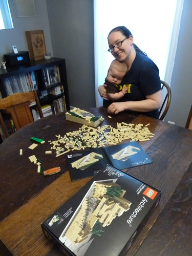 Putting the Fallingwater LEGO set together with Mommy and Daddy.