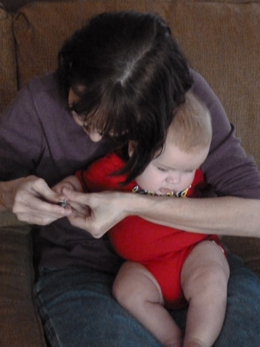 Mom put Grandma Gail to work trimming my fingernails before letting her leave on Sunday.
