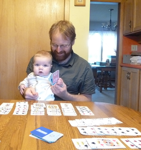 With all the people around, I didn't want to go to bed once we got to the Great-grandparent's house. Dad decided to teach me how to play Hand and Foot.