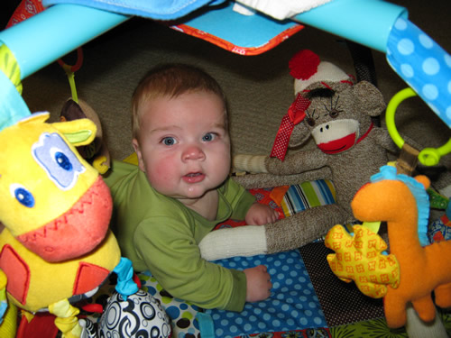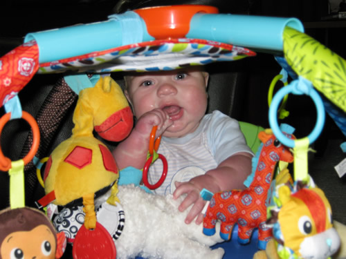 I was a good boy for Grandma and Grandpa: I took my naps, I went to bed on time, and I slept through the night. Mommy and Daddy thought they would be lucky and I would stay on that schedule, but I stayed up late last night when we got home, and I woke Daddy up at 4:15 this morning.