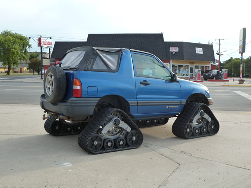 We saw this tracked Tracker on the road - Grandpa Kevin should do this to his Tracker!