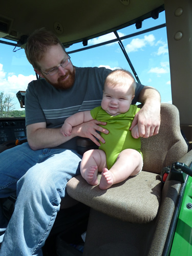 Me and Daddy in one of the tractors. I'm on the buddy seat. Daddy said there were no buddy seats when he was little, so he had to sit on an upside-down five-gallon pail.