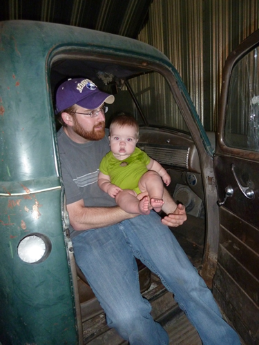 Sitting in the 1949 Chevy pick-up Daddy learned to drive with.