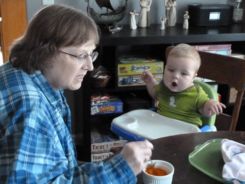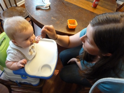 Jenna is helping Mommy out by feeding me.