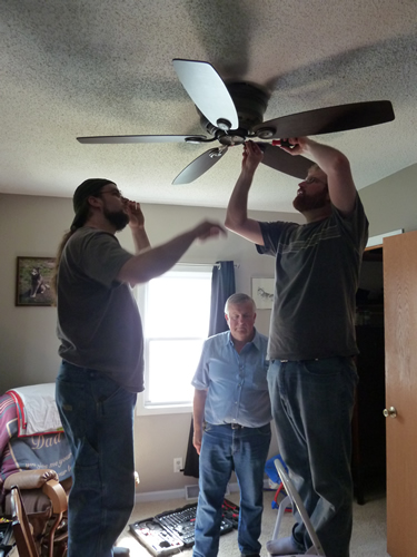 Daddy, Uncle Neil, and Grandpa Al putting up a ceiling fan.