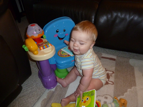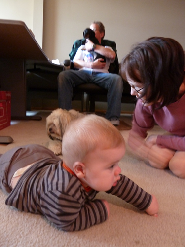 When we were in town on Wednesday, we went to visit Grandma Gail and Grandpa Kevin at their new place. I played on the floor and watched Max and Abby run around.