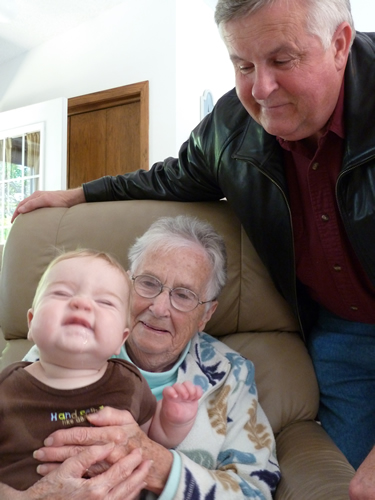 Daddy went with me to see Grandpa Al and Great-grandma Dorothy while Mommy was working.