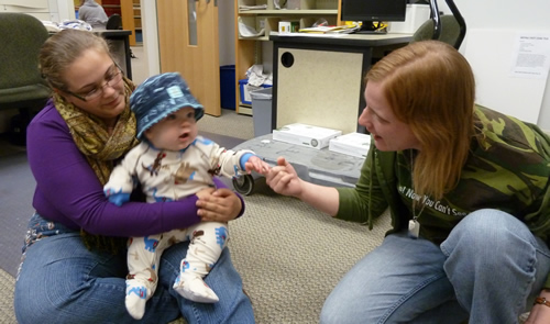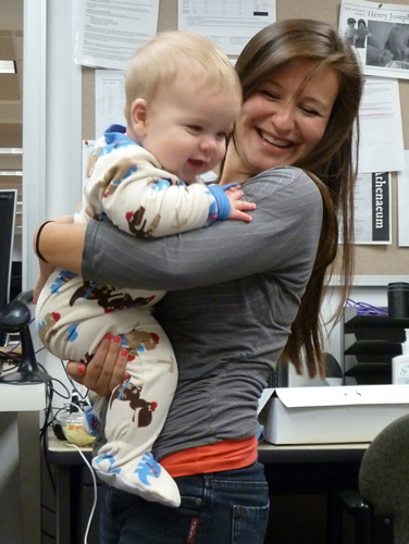 On Thursday, Daddy took me to work to meet some of the students who used to work for him. Liz was really happy to see me because she loves babies and it was her birthday!