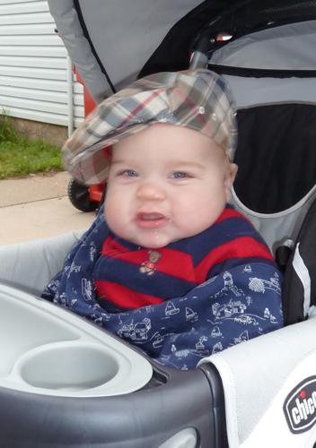 On Friday I was home with Mommy. Daddy went to work with Grandpa in the morning and then to his regular job in the afternoon, so I was home with Mommy all day. We went for a walk with Duke.