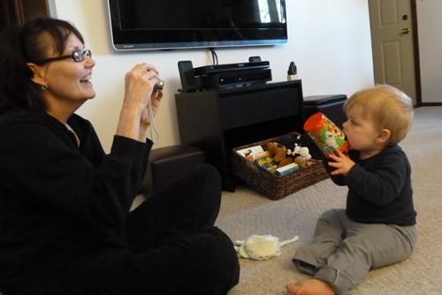 Daddy taking a picture of Grandma taking a picture of me.