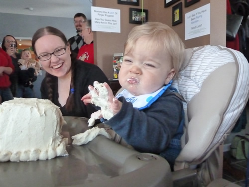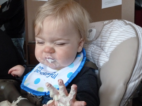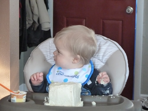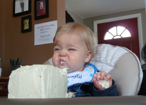 I don't think I like this.(Daddy told me to say that the cake was actually very good, and wanted me to remind everyone that I like formula, which tastes awful.)
