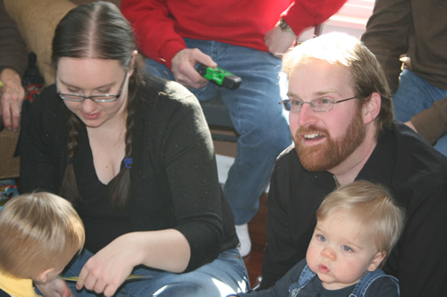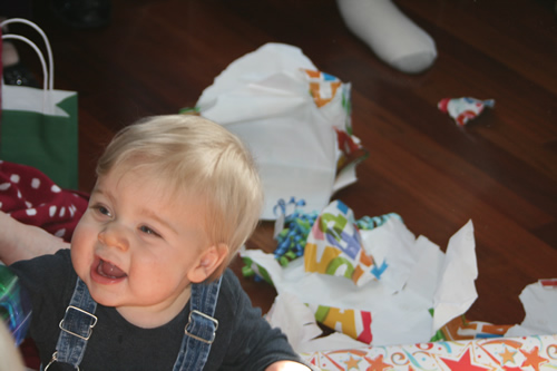 After the cake, it was time to open some presents. I prefer to play with stuff rather than open it, so I had Mom, Dad, and Isaac help me tear open my gifts.