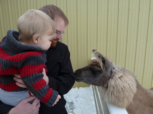 Henry: Daddy! The LLAMA IS SNIFFING MY HAND!
