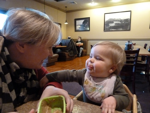 Auntie Kara fed me while the big people were waiting for their food to arrive.