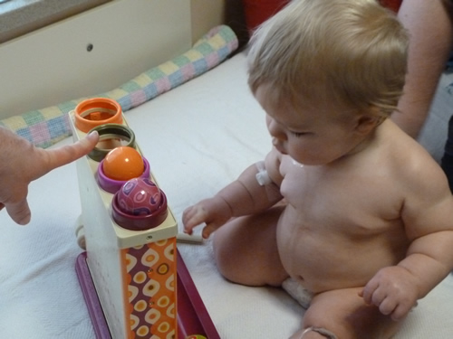 Playing with my new toy Auntie Kara brought for me.