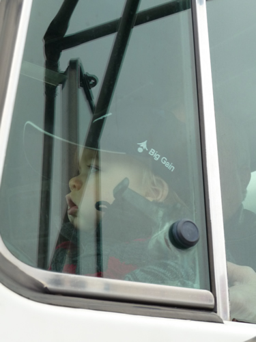 ...and on Tuesday we went to see Grandpa's truck! The chair in the truck is really high up - higher than sitting on Daddy's shoulders! And Grandpa used the air horn - it was kind of loud. I was a little nervous when Grandpa started the truck because it makes so much noise, but I wasn't scared.