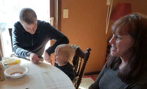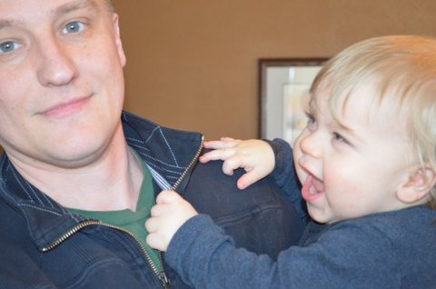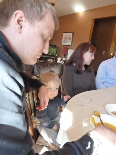 On Sunday we went to Michael's birthday party. He's eighteen now. I ate lunch with everyone and I had some of what they were having (and a little baby food). Mommy and Daddy are excited that the time when they won't have to drag little jars of food around is coming soon.