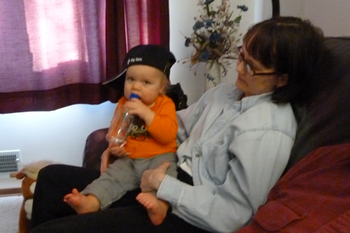 While I was at Grandma and Grandpa's, I had a lot of visitors. Grandma Gail came to seem me more than once, and both Great-grandma Darlene and Great-grandma Dorothy came to see me. And Janice and Jerry and David and Dan and Deb and Chris and Diane and Milton and...and I think that's all.