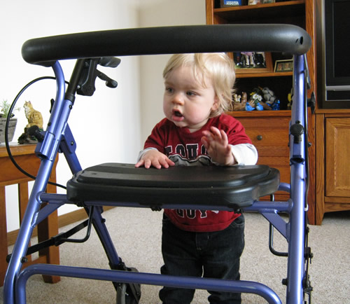 I'll give you a quick hug, but then I need to go play with your walker again.