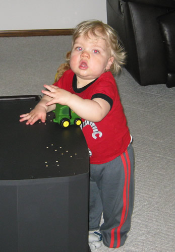 Me playing with Johnny Tractor - not the most flattering picture, is it?