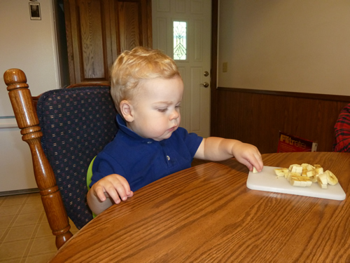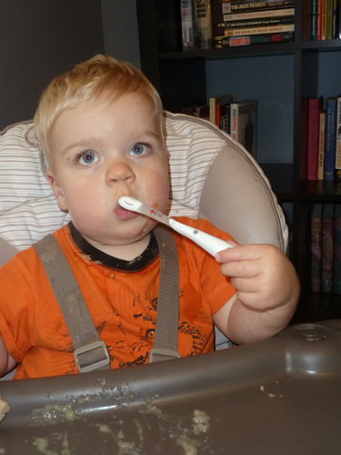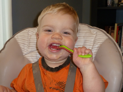 Duke likes the spoon too, since I seem to drop a lot of food on the floor when I use it.