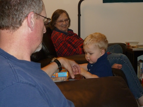 On Sunday, Grandma Gail and Grandpa Kevin came over to visit.