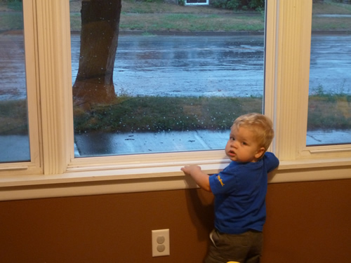 Sunday morning it rained and rained. In the afternoon Mom and Dad took me for a drive to get me to sleep, since I wouldn't take a morning or afternoon nap. It worked - I fell asleep before we out of town.