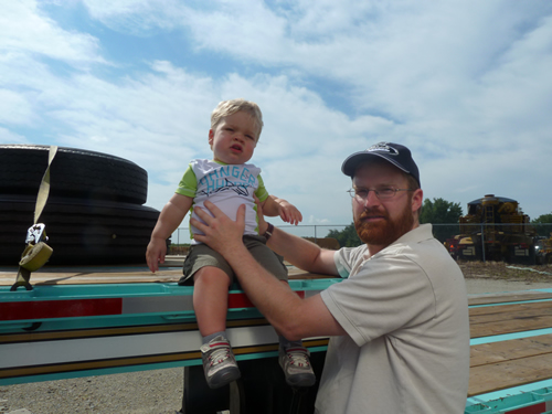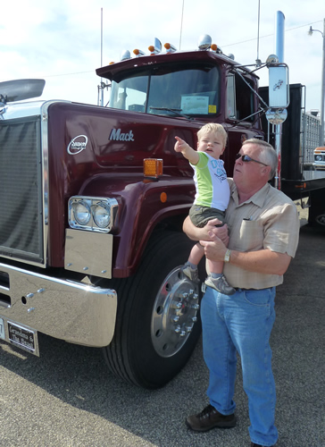 (We are standing by a Mack Superliner, which is one of Grandpa's favorite trucks.)