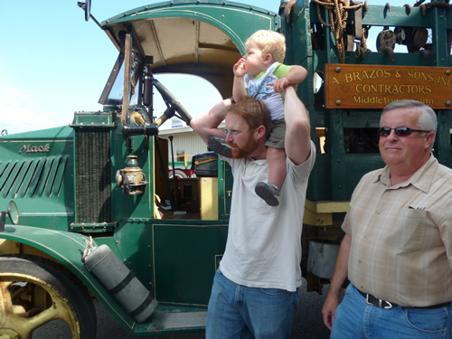 With Daddy and Grandpa by an old Mack truck - it didn't even have doors!