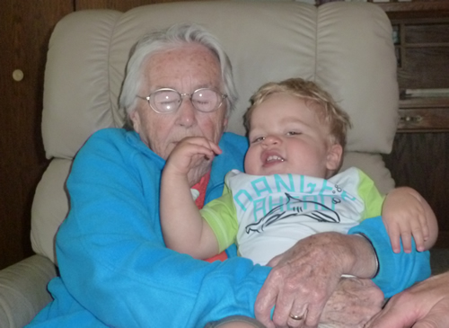 After the fair, I was so tired I fell asleep in the car as soon as the air conditioning cooled me off. But Daddy wasn't done for the day, and we went to see Great-grandma Dorothy! Auntie Diane and Uncle Milton we there, and Jay and Sandy. We had fun visiting, after I woke up enough to run around.