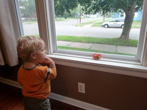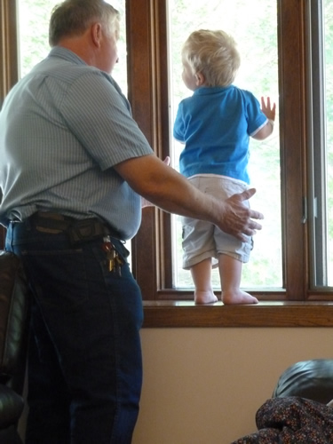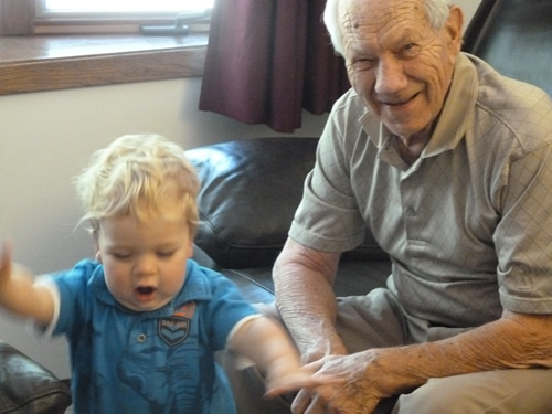 Watch out, Great-grandpa, or I'm going to run you over with my tractor.