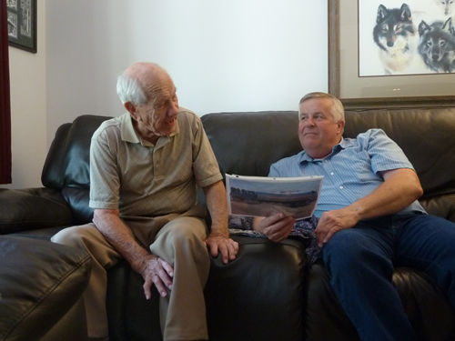 Great-grandpa Les and Grandpa Al looking at one of my truck pictures.