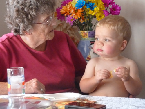 In the afternoon I went to see Great-grandma Darlene and everyone else again. I played with the other kids and ran around outside while Grandpa Al chased me. It was fun. Better than listening to all those grown-ups talk talk talk all afternoon.