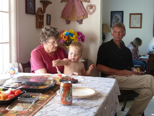 Daddy really wanted me to sit in Great-grandma's lap so he wouldn't have to keep chasing me around the house, but there are so many things to see and touch at her house I couldn't sit still for very long.