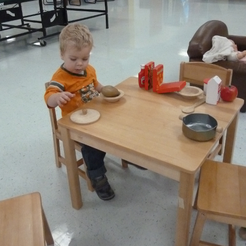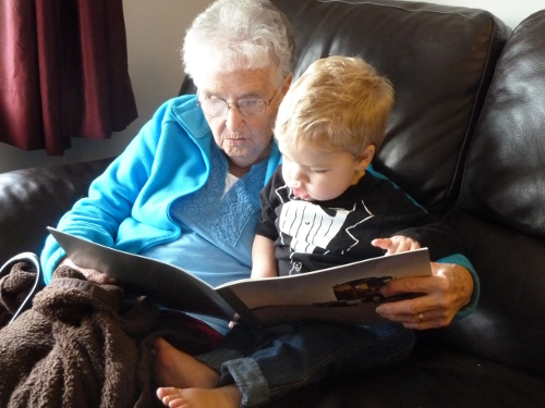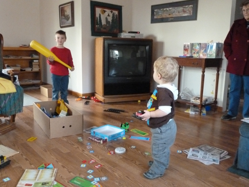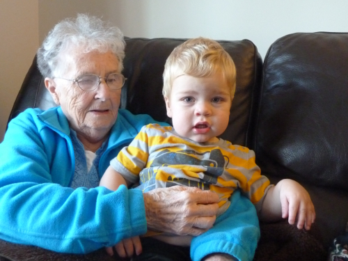 Back at Great-grandma Darlene's house, we played with more toys and had supper. I ate at the table like everyone else and didn't fall off the chair or make a mess.