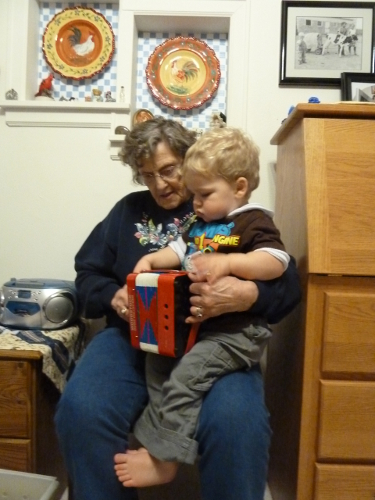 Later in the morning, Great-grandma Dorothy came over with Auntie Diane and Uncle Milton. They watched me play for a while. Daddy tried to get me to take a nap, but I refused. I wanted to show off and run around for my guests.