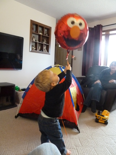 After lunch, Grandma Gail came over! And she brought me a balloon! With Elmo on it! How did she know I've always wanted a balloon?