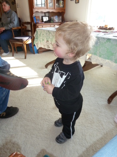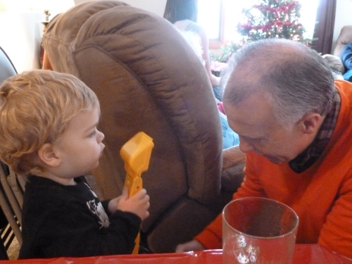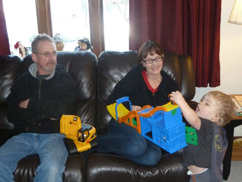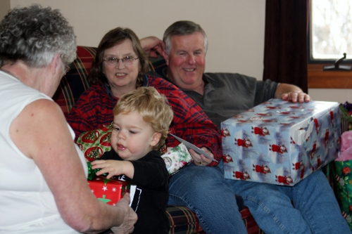 Christmas #3 was at Grandma Wynne and Grandpa Al's on Christmas Day. Mommy made everyone pancakes for breakfast, and Grandma Gail and Grandpa Kevin came over to eat and open presents.