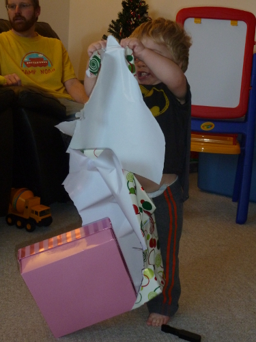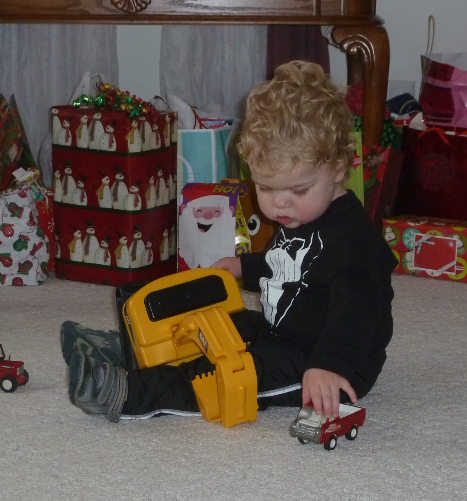 Thank you! Thank you! Thank you! To everyone at all four Christmases for my presents! I promise to play with all my toys and puzzles all the time! And Daddy says I have to put all my money in the bank. So I will. For now.