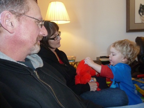 Grandpa Kevin and Grandma Gail with my vintage Tickle Me Elmo (Thanks Great-grandma Muriel!).