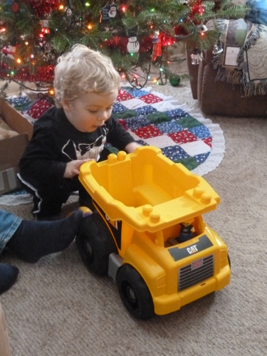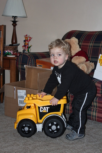 Showing my new truck to Grandpa Al (he's behind the tree).