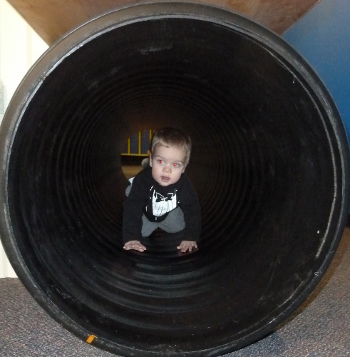 On Saturday we went to the Children's Museum. And after all my practice at home, I was ready to crawl through the big tunnel.