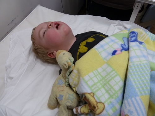 Mommy and Daddy warned the doctor I was a fighter. He didn't seem to believe them in the waiting room because I was being so good. But after he watched me kick and scream getting the IV put in, he bumped up the level of the sedation drug and knocked me out quick.