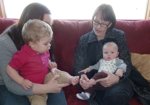 Meeting baby Graham (That's his mommy Liz helping him stand).