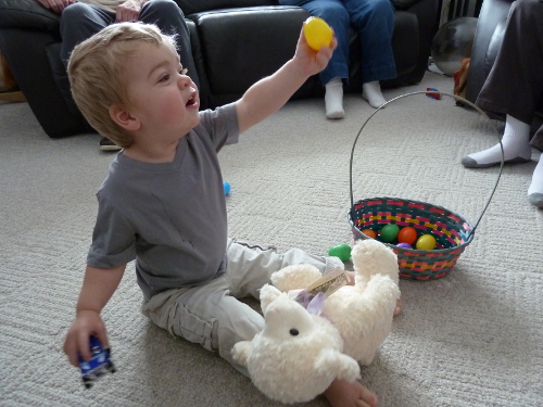 And on Sunday morning, Diane and Milton came over to see me and brought me an Easter basket filed with colored eggs and a stuffed lamb. They also gave me some money to buy toys! Thank you Diane and Milton!